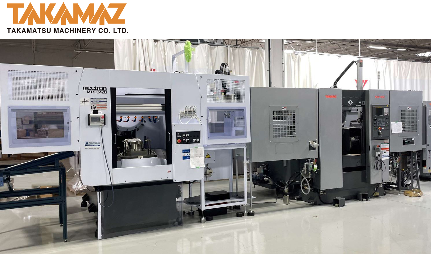 Takamaz machines specialize in high-volume production turning, with most every model having integrated automation. They have a broad product line that covers almost any turning need, from single spindle lathes to twin spindle, twin turret lathes including bar fed, auto-loading and gantry-loading machines.