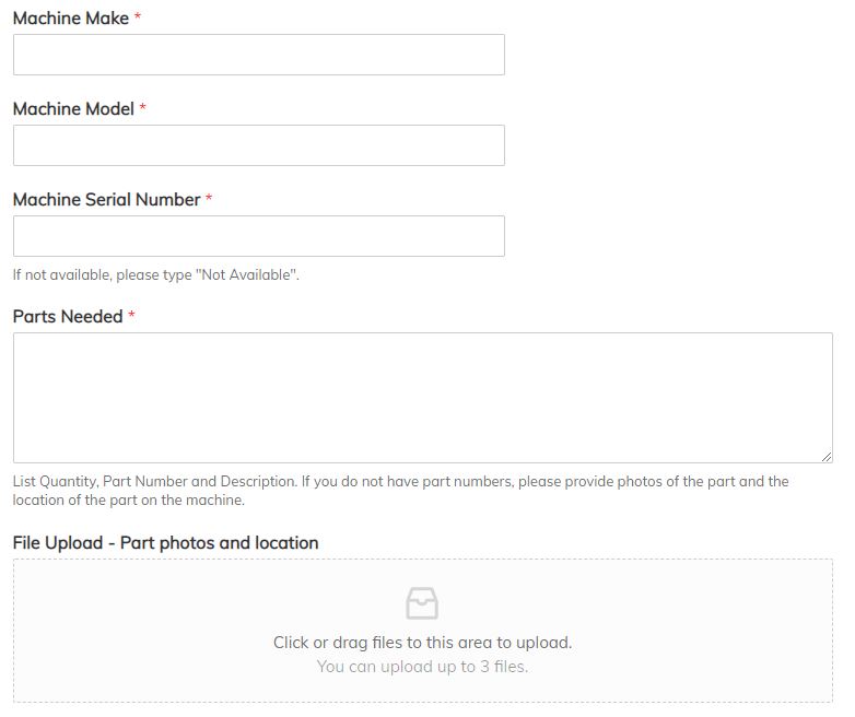 To ensure a prompt response all requests for Machine Tool Parts must include the Machine Model and Serial Number. Please provide part numbers and descriptions if possible. If a part number is not available, we need a detailed description and pictures of what part is needed, and pictures of where it is located on the machine. Submit all your information here.
